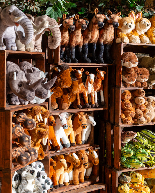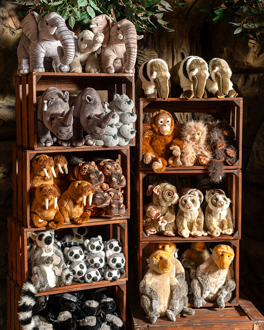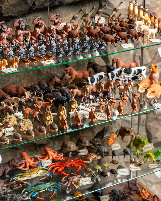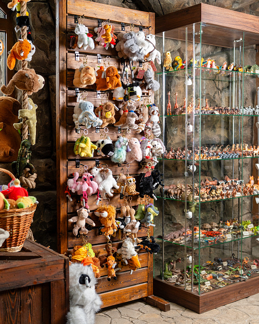 В экзотариуме можно приобрести плюшевых зверьков и коллекционные фигурки животных.